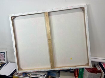 Kunstwerk op houten raamwerk. Klaar om op te hangen. Omlijsten op aanvraag.