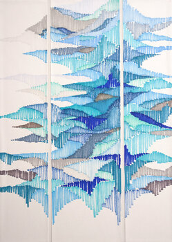 In dit werk wilde ik de essentie van een verre echo vastleggen, als golven van emotie die zich geleidelijk ontvouwen door tijd en ruimte. Het gebruik van inkt en glazuur creëert een delicaat, vibrerend ritme dat sereniteit en introspectie oproept. Het brengt een energie van diepe rust en subtiele beweging in uw huis en nodigt uit om verder te kijken dan de oppervlakte.