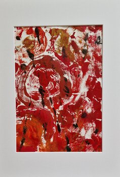 Dit werk is een gepassioneerde explosie van emoties, vastgelegd met de monotypetechniek. De levendige rode tinten en dynamische vormen symboliseren intense energie en beweging. Ik wilde de rauwe kracht en het bruisende leven uitdrukken die elke ziel in zich draagt. Dit beeld brengt een krachtige, vurige sfeer in elke kamer en nodigt uit tot diepe gevoelens en dromen.