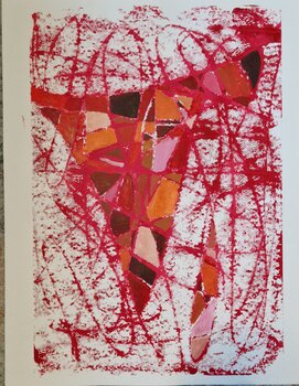 In deze monotype heb ik gewerkt met intense rode en oranje tinten om passie en energie vast te leggen. De abstracte vormen zijn als fragmenten van een innerlijk vuur dat tegelijkertijd chaotisch en harmonieus oogt. Dit werk brengt warmte en dynamiek in elke ruimte en nodigt je uit om emoties te voelen en je te laten meeslepen door de kleurenstroom. Een uiting van pure vitaliteit.