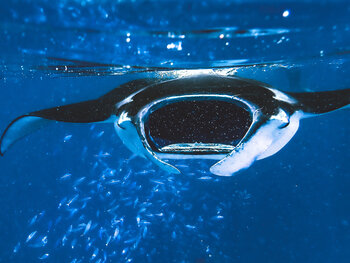 Het "stof" dat je onder de waterlijn ziet drijven, is een essentieel onderdeel van het dieet van een manta. Plankton bestaat uit de deeltjes die je op deze foto ziet, en in tegenstelling tot stof zijn het levende organismen. Scholen vissen fungeren als een pad voor manta's om hordes plankton te zoeken om hun honger te stillen. Dus, terwijl de zon schijnt op de wezens die je hebt leren kennen, respecteer de kleine dingen die het leven op het land… en in de zee mogelijk maken.