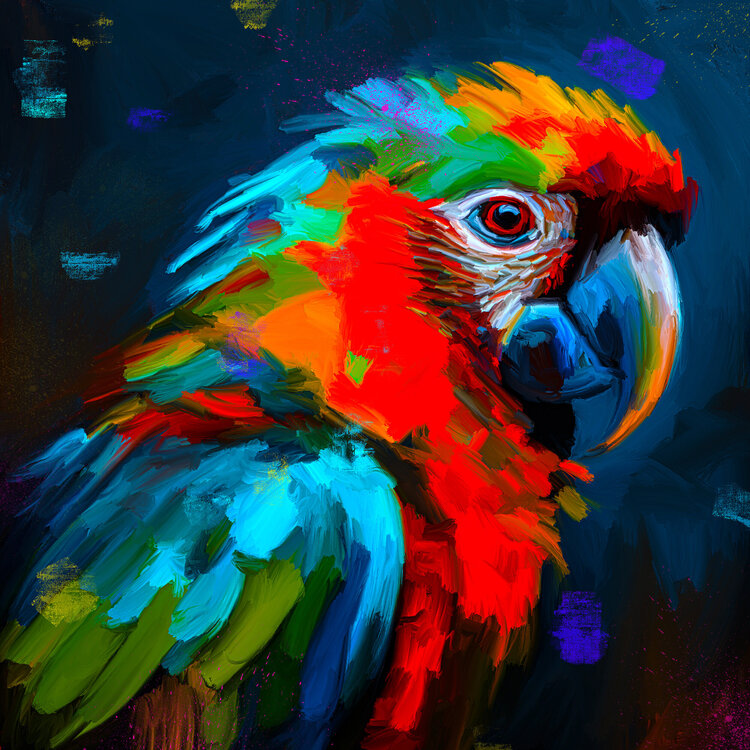In dit werk ontketen ik de pure vitaliteit en expressieve kleurkracht van een papegaai door de levendige streken van acrylverf, lithografie en het unieke spel met hars. De dynamische compositie weerspiegelt de ongetemde schoonheid van de natuur. Met elke penseelstreek laadde ik het schilderij op met emoties die de wilde ziel van deze majestueuze vogel vastlegden. Bij u thuis creëert het een oase van kleur en levensvreugde, een dagelijkse inspiratiebron.… Het is uniek.