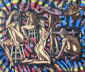 Bij het maken van dit stuk heb ik mijn ziel gestort in het vermengen van expressionisme met geometrische vormen om een semi-abstracte dans van de menselijke figuur te creëren, omhuld door een tapijt van diepgewortelde emoties en kleuruitbarstingen. De tastbare rijkdom van olie zorgt ervoor dat elke streek resoneert met het leven, waardoor een verhaal ontstaat dat openstaat voor interpretatie en toch verankerd is in de gedeelde contouren van onze… ervaringen. Het is een visuele symfonie die bedoeld is om de omgeving van de waarnemer naar een hoger niveau te tillen en deze te voorzien van een dynamische energie en een vleugje raadselachtig.