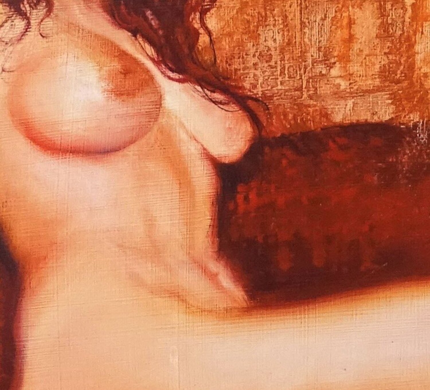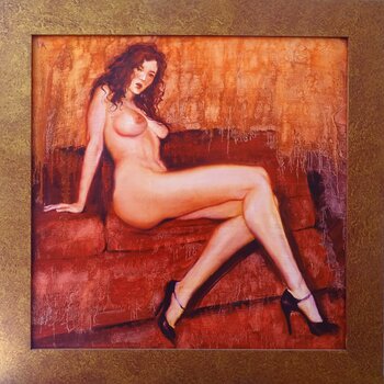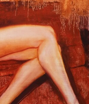 In dit werk onderzocht ik sensualiteit en vrouwelijke kracht met intense passie. De vurige kleuren en expressieve penseelstreken boeien en creëren een gedurfde dialoog tussen kunst en kijker. Elk detail, van de tederheid van de huid tot de mysterieuze reflecties, is een viering van natuurlijke schoonheid en rauwe emotie. Dit stuk is niet zomaar een schilderij; het is een visuele ervaring die de zintuigen prikkelt… en tot reflectie uitlokt.