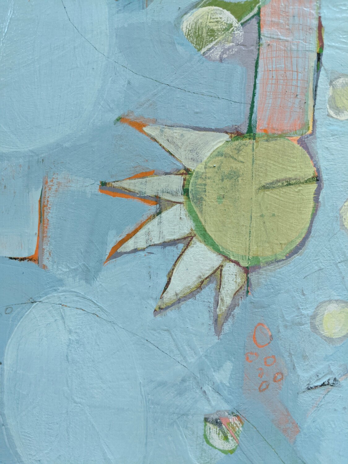 De stille kracht van Moon Dance beweegt de blik van de kijker door het hele schilderij. Close-up weergaven (zie detailfoto's) tonen de methode van de kunstenaar om lagen op te bouwen en vervolgens terug te krabben en te schuren in het schilderij om een prachtige geschiedenis van markeringen en kleuren te onthullen. De focus van dit stuk is niet alleen de vormen, het zijn de kleuren, het subtiele maar ietwat grillige ontwerp. Als je over dit stuk… leest, heb je ongetwijfeld gemerkt dat al deze dingen zijn bereikt met een bekwame hand en een zeer verfijnd oog voor design. Met de lijst meet Moon Dance 45 x 45 cm en zal perfect vlak tegen de muur hangen.