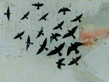 Allerlei soorten bijeenkomsten zijn een behoefte die alle bewoners van deze aarde - mens en dier - op de meest onverwachte of afgelegen plaatsen delen, en deze scène omvat precies dat: de vreugde van tijd doorbrengen met anderen. De verzameling is acryl, bladgoud en inkt op een berkenhouten paneel, ingelijst in een zilveren en zwarte baklijst (zie details). Het paneel meet 30 x 30 cm, omlijst 35 x 35 cm.