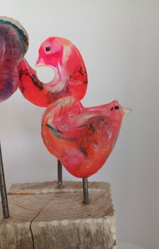 In mijn sculpturen combineer ik hout, metaal en epoxy tot een werk vol leven en energie. De figuren, schijnbaar zwevend in de lucht, symboliseren vrijheid en de schoonheid van het onconventionele. De levendige kleuren en levensechte weergave roepen vreugde en optimisme op. Dit kunstwerk brengt een speelse en opbeurende sfeer in elk huis, een dagelijkse herinnering aan de lichtheid van het bestaan.