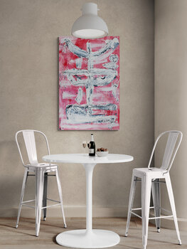 Kunstwerk op houten raamwerk. Klaar om op te hangen. Omlijsten op aanvraag.