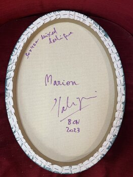 In dit werk heb ik acryl, olie, oliepastel en inkt samengesmolten om een figuratief stuk te creëren dat een unieke charme uitstraalt. Ik leg adel en elegantie vast door een konijn gekleed in historische kleding rijk aan details en texturen. De combinatie van natuurlijke en sierlijke elementen inspireert een gesprek tussen het traditionele en het fantastische. Dit schilderij brengt een energie van mysterie en verfijning in elke ruimte.