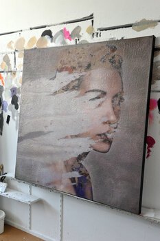 Karin Vermeer is een onafhankelijke kunstenaar die sinds 2002 in Rotterdam woont en werkt. Haar werken ontstaan door het digitaal combineren en bewerken van foto's en schilderijen tot nieuwe, originele kunstwerken. Vermeer is gespecialiseerd in portretten die zijn gemaakt door vier tot vijf verschillende gezichten, van verschillende afkomst en afkomst, over elkaar heen te leggen en te vermengen, om een nieuwe, niet-bestaande persoon te creëren. De digitale beelden worden geprint en verf wordt toegevoegd om het eindresultaat te bereiken: een poging om een digitaal beeld weer tastbaar te maken.