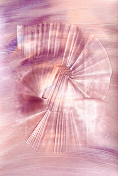 Licht is een centraal motief in al mijn schilderijen – als zoektocht, als beweging, als verandering. In mijn abstracte werken onderzoek ik het door middel van vloeiende vormen en ritmische lagen. Mijn vierde werk in de serie "Aurora" is gemaakt met acrylverf in violet, oranje en roze op milieuvriendelijk steenpapier. Het beeldt een vluchtig moment uit waarin kleur en licht samensmelten en vorm en kleur zich opnieuw ontvouwen.