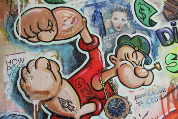 Disrupt or Be Spinach herinterpreteert de legendarische Popeye – niet als de nederige zeeman met een blikje groenten, maar als het ultieme symbool van ambitie en ondernemersgeest. Met gebalde vuisten en ogen gericht op een brullende rode La Ferrari, schopt Popeye de spinazie letterlijk opzij – en verkiest hij gedrevenheid, visie en disruptief denken boven traditie. Om hem heen wijzen richtingaanwijzers naar Miami, Ibiza en Dubai – wereldwijde knooppunten… van ambitie, rijkdom en vernieuwing. Eén bord is bewust leeg gelaten, waardoor de kijker wordt uitgenodigd om zijn eigen bestemming, zijn eigen toekomst in te vullen.