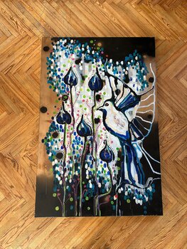 In dit werk heb ik mijn passie gestoken in het mengen van acryl en olie om de dynamische dans tussen natuur en geest tot uitdrukking te brengen. De abstracte vormen en levendige kleurexplosies brengen een levendige energie teweeg en symboliseren vrijheid en hoop. Dit kunstwerk straalt een gevoel van beweging en ontwaking uit, klaar om je ruimte te vullen met inspiratie en een vleugje wilde schoonheid.