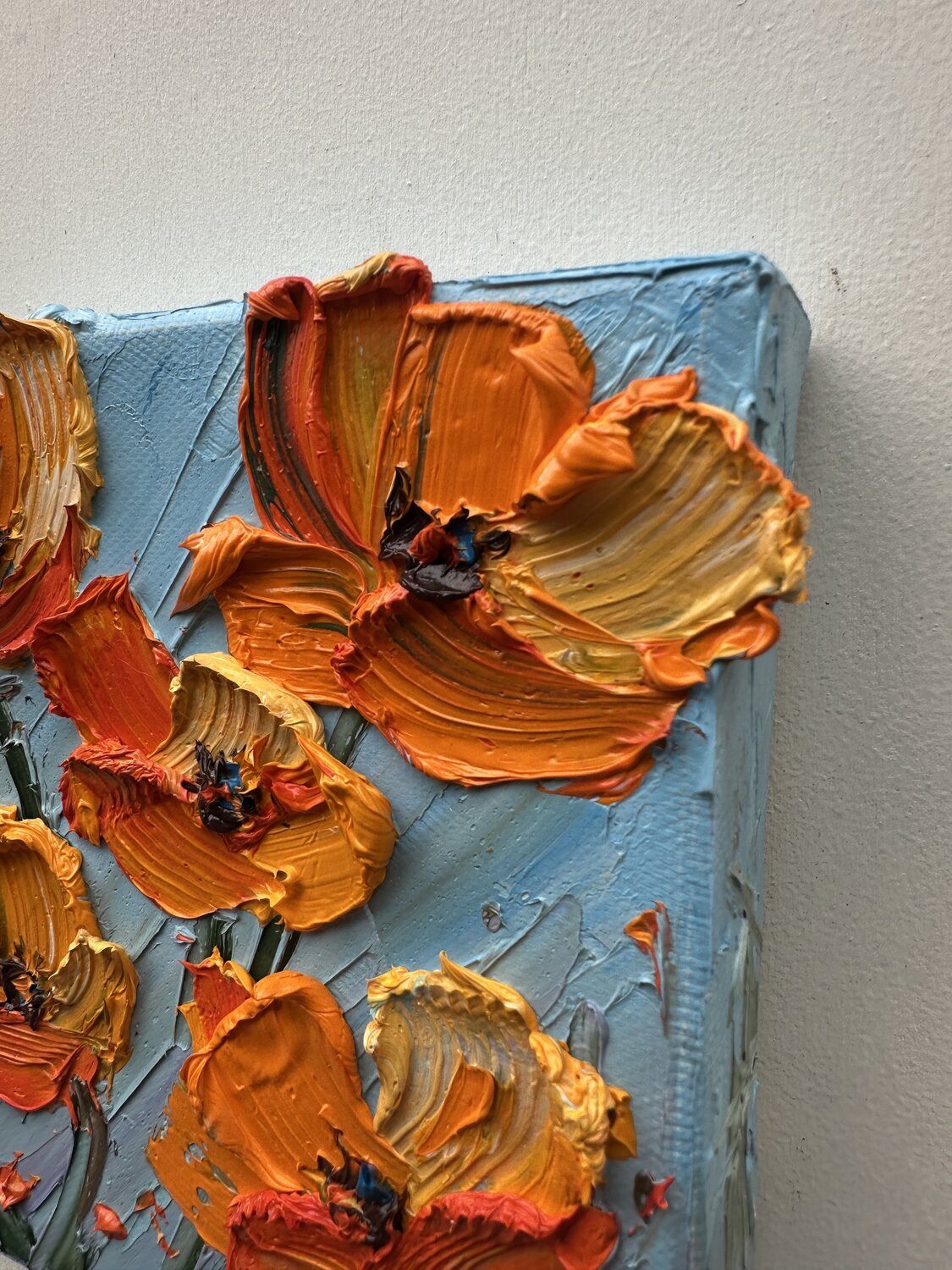 « Mijn artistieke visie is om een reis van vreugde en verbinding te delen met mijn gelukkige schilderijen. Met energetische passie wil ik mijn gelaagde verhaal vertellen. »