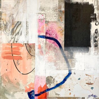 Dit stuk is een REBEL. Het is een collage van verschillende acrylschilderijen op canvas gecombineerd met schilderen er bovenop. Het kan zelfs worden opgehangen op de manier die de verzamelaar kiest! Het zal worden ondertekend nadat de oriëntatie is besloten.