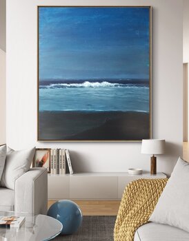 In dit schilderij heb ik de serene maar krachtige essentie van de oceaan bij nacht vastgelegd. Met acrylverf heb ik zowel figuratieve als impressionistische stijlen gebruikt om de dynamische beweging en de emotionele diepte van de zee over te brengen. De diepe blauwtinten en zachte witten roepen een gevoel van kalmte en mysterie op, en nodigen de kijker uit om even stil te staan en de natuurlijke schoonheid van de nachtelijke golven te overdenken.… Dit kunstwerk is een eerbetoon aan de introspectieve momenten die we aan de rand van de uitgestrekte, golvende oceaan tegenkomen.