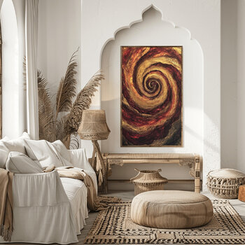 Twee verschillende zielen – mannelijk en vrouwelijk – vinden elkaar altijd. Hun energieën vloeien samen als licht en warmte, en creëren een stille melodie van liefde en begrip. In elke penseelstreek leeft het moment van verbinding – sterk maar toch zacht, vurig maar toch kalm. Dit schilderij spreekt van eenheid geboren uit contrast, van harten die elkaar zelfs in stilte herkennen.