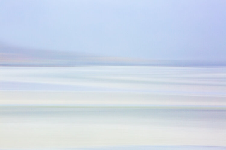 Deze minimalistische afbeelding is onderdeel van mijn *Liminal*-serie, waarin ik de tussenruimtes verken waar land, zee en lucht verschuiven en vervagen.