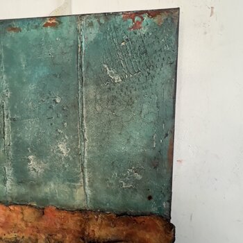 In dit werk combineer ik acrylverf, collage-elementen, pigmenten en tape om een abstract landschap vol emotie en diepte te creëren. Door de gelaagdheid van de materialen ontstaat een textuur die doet denken aan vergeten herinneringen. Het kleurenspel weerspiegelt de schoonheid in verval en nodigt uit tot nadenken over vergankelijkheid. Dit beeld brengt een sfeervolle en doordachte energie in elke kamer.