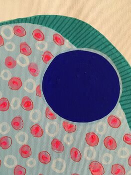Gemaakt op een vrij, zwevend canvas voor meer lichtheid. Geschilderd met acryl en vilt en enkele steken met draad.