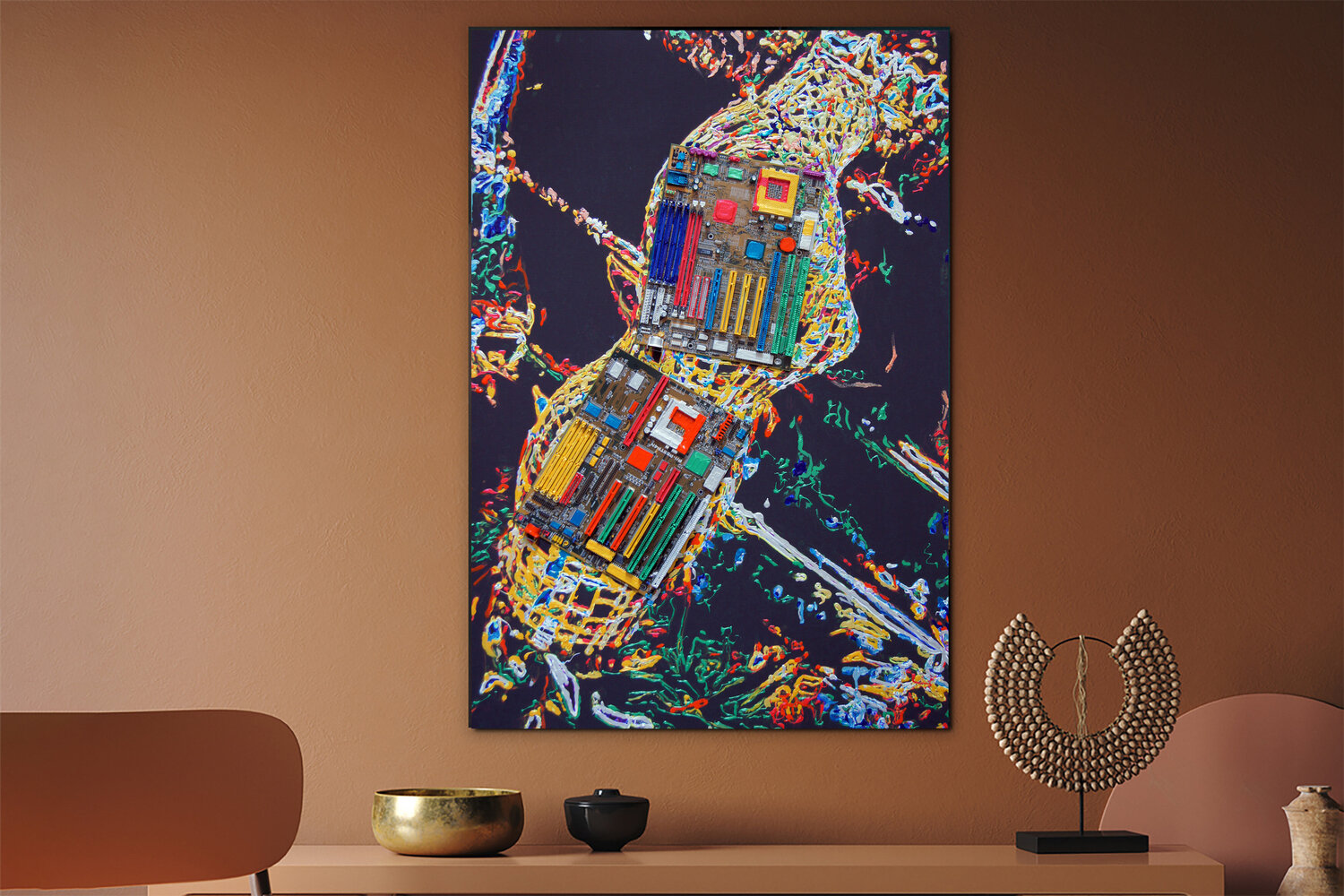 Het beeld is bedacht om recycling op te vrolijken en om afval in het dagelijks leven opzettelijk te verminderen. De foto was gevuld met oude microchips die een mechanisch interieur van de romp onthullen. De oude microchips die hadden moeten worden weggegooid, komen weer tot leven. Het is een afbeelding van afvalmicrochips die door de romp een lichaam en een nieuwe betekenis hebben gekregen - de innerlijke werking van de romp.