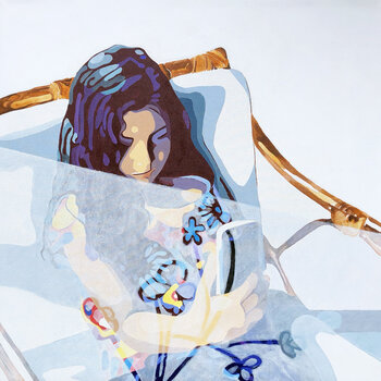 Dit werk is een figuratieve weergave vol emoties, gemaakt met de diepgeworteldheid en veelzijdigheid van acryl. Ik probeerde introspectie en sereniteit vast te leggen; een menselijke figuur ondergedompeld in gedachten, omlijst door zachte lijnen en een rustig kleurenpalet.