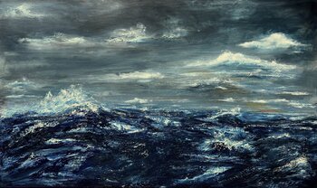 In dit olieverfschilderij heb ik ernaar gestreefd de rauwe, golvende kracht van een stormachtige zee vast te leggen, afgewisseld met een glimp van serene schemering. Het kolkende donkere water en de sombere lucht weerspiegelen de tumultueuze emoties binnenin, terwijl de breuken in de wolken momenten van helderheid en hoop onthullen te midden van onrust. Dit stuk nodigt uit tot contemplatie over veerkracht en de schoonheid die te vinden is in de stormen… die we in het leven doorstaan. De energie ervan zal een dynamische en doordachte aanwezigheid in elke ruimte brengen.