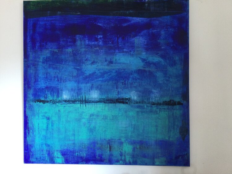 In dit werk wilde ik de mysterieuze diepte van blauw vastleggen, een symbool van kalmte en hoop. Elke penseelstreek drukt een intense emotie uit, een mix van sereniteit en dynamiek. Dit schilderij brengt een rustgevende sfeer in huis, vol contemplatie en eindeloze dromen. Het nodigt je uit om je onder te dompelen in een oceaan van rust en diepe gedachten.