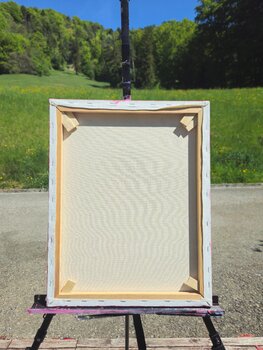Kunstwerk op houten raamwerk. Omlijsten op aanvraag.
