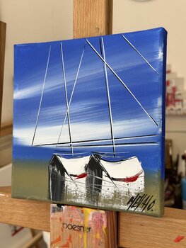 Een kunstliefhebber, aankoop gedaan in december 2023: "Les oiseaux bleus... (ORIGAMI 2022)", Acryl, Collage op Karton , 10,6x10,6in