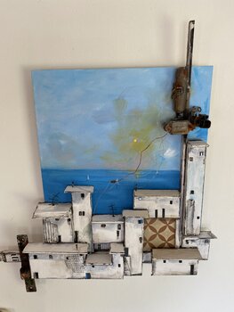 In dit werk heb ik acryl, collage, inkt en hergebruikte objecten samengevoegd om de kruising tussen impressionisme en realisme met een vleugje vintage te verkennen. Elke textuur en elk materiaal drukt de kwetsbaarheid en weerstand van onze herinneringen en geesten uit. De abstracte structuren en levendige kleuren nodigen je uit om na te denken over de schoonheid van het kortstondige, waardoor een sfeer van sereniteit en emotionele diepte aan elke… ruimte wordt toegevoegd.