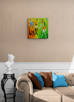 Combinaties van kleuren en vormen versterken de vrolijke, levendige en optimistische beleving van het schilderen.