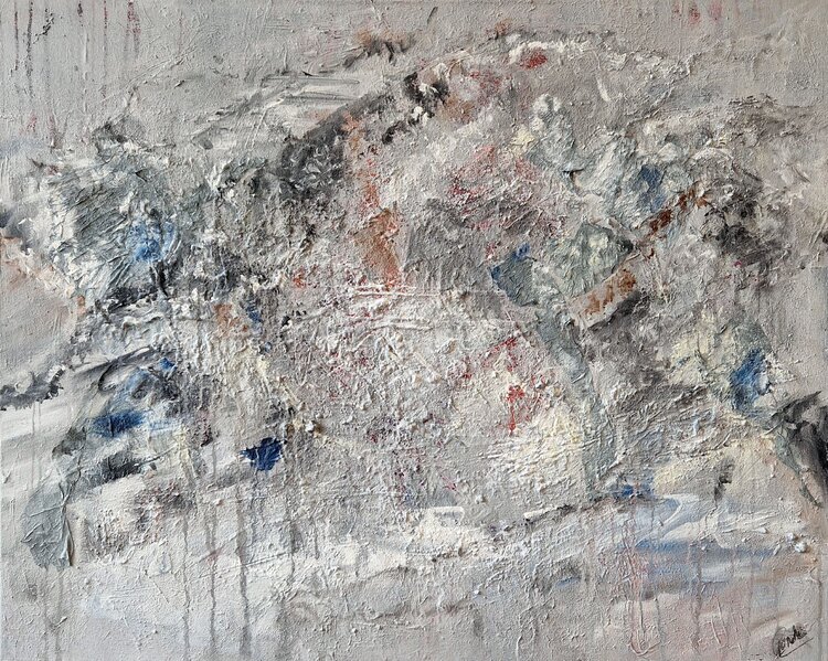 Dit werk weerspiegelt mijn passie voor experimenteren en het creëren van tastbare emoties via gemengde media. Ik heb acryl, Oost-Indische inkt, spray en organische materialen gebruikt om een meerlaagse, textuurrijke abstracte expressie te creëren. De chaotische maar harmonieuze structuren nodigen ons uit om na te denken over de complexiteit van onze emotionele wereld. Dit schilderij straalt een energie van introspectie en ontdekking uit, ideaal voor… het bevorderen van een dynamische en stimulerende sfeer in elke kamer. Doorslaggevend bij de totstandkoming van dit werk was een meerdaagse wandeling naar een hut, waarbij we de kracht van de natuur en de elementen konden ervaren. In dit werk worden de emoties van de ervaring uit het geheugen vastgelegd. Dit werk is een mooie aanvulling op het werk "On the Summit 2"