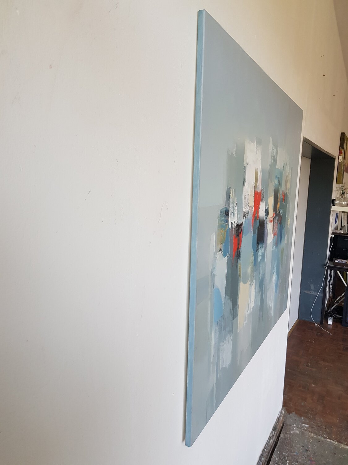 Kunstwerk op houten raamwerk. Klaar om op te hangen. Omlijsten op aanvraag.