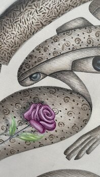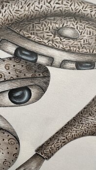 Bij het maken van dit stuk heb ik de vloeibaarheid en onderlinge verbondenheid van abstracte vormen onderzocht, waardoor elke vorm organisch kan uitgroeien tot de volgende. Mijn doel was om een gevoel van nieuwsgierigheid en introspectie op te roepen, en kijkers uit te nodigen om hun persoonlijke verbindingen met de harmonieuze en conflicterende elementen te interpreteren. Dit kunstwerk, gerealiseerd met potlood op papier, combineert componenten… van abstracte en expressionistische stijlen, waardoor een dynamiek ontstaat die zowel uitdaagt als het oog behaagt. Het biedt een tijdloze aanwezigheid, waardoor het een contemplatieve, serene energie uitstraalt in elk huis.
