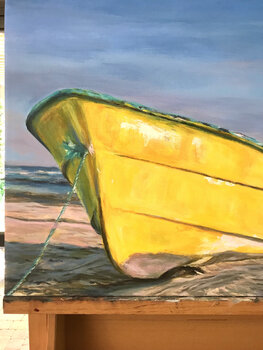 Deze boot met zijn levendige gele kleur vertegenwoordigt de vrijheid om naar plaatsen te kunnen varen waar je je gelukkig, levend en vrij kunt voelen. In werkelijkheid hebben we altijd de mogelijkheid om te kiezen wat we doen, waar we heen gaan, bij wie we zijn... zelfs waar we gaan wonen... Maar soms geloven we uiteindelijk dat het… niet mogelijk is. De zon is er echter altijd, achter de wolken, zelfs in het donker van de nacht aan de andere kant van de planeet is het dag. Kortom, wat we ook doen, waar we ook zijn, de zon is er altijd, zelfs in ons als we dat zo willen voelen.
