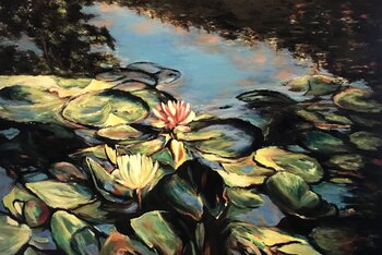 Mijn bedoeling bij het maken van dit Werk van twee bloeiende waterlelies midden in een donkere omgeving was juist om een groot kleurencontrast te genereren. Dit is hoe ik het leven op dit moment waarneem, met grote contrasten. Ik ben ervan overtuigd dat, hoewel veel dingen als behoorlijk donker kunnen worden waargenomen, ze juist helpen om anderen nog helderder te laten lijken.