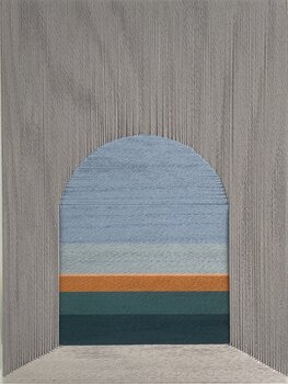 In dit werk heb ik de harmonie van eenvoudige geometrische vormen en zachte kleuren onderzocht met behulp van katoen. De boog nodigt uit om door een kalme, gelaagde horizon te kijken, wat een gevoel van rust en evenwicht oproept. Met minimalisme als kern brengt dit werk een serene, aardende energie in elke ruimte en stimuleert het stille reflectie door het tactiele en visuele ritme.