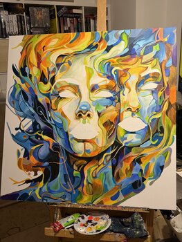 In dit werk heb ik een innerlijke onrust en diversiteit uitgebeeld. De verweven kleuren en vormen weerspiegelen emoties en gedachten die voortdurend in beweging zijn. Het brengt een energieke levendigheid in huis, nodigt uit tot reflectie en gevoel – een uitnodiging om de vele facetten van het zelf te omarmen.