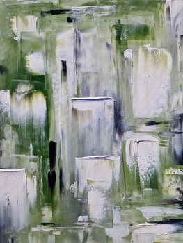 In mijn creatie onderzocht ik de vloeibaarheid en transparantie door middel van acryl, in een poging de kortstondigheid en constante beweging van het leven vast te leggen. Zachte accenten van groen en wit smelten samen en roepen een sfeer van kalmte en mijmering op. Dit werk, levendig en meeslepend, is een oase van rust, het nodigt uit tot reflectie en sereniteit, ideaal om de leefruimte te verrijken met een vleugje abstractie dat tot contemplatie… leidt.