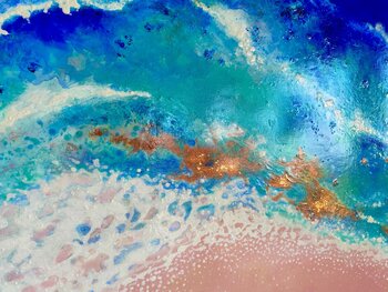 In dit werk heb ik de levende essentie van de oceaan vastgelegd: zijn energie, zijn kracht. Ik heb levendig acryl en verguldsel gebruikt om de glans van het licht op het water te reflecteren. Mijn expressionisme nodigt uit tot contemplatie, terwijl abstractie de vloeiende bewegingen van golven oproept. Het is een stuk dat dynamiek en sereniteit in uw ruimte zal ademen, een visuele echo van het rustgevende geluid van golven die de kust raken.