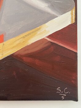 In dit werk heb ik een rustig ochtendmoment in een café vastgelegd. De warme tinten en het spel van licht en schaduw nodigen uit tot een bedachtzame pauze. Dit schilderij is een ode aan de kleine routines die ons dagelijks leven kenmerken. Het roept de warmte en het comfort op van het begin van een nieuwe dag. De energie ervan brengt een vleugje rust en inspiratie in uw ruimte.