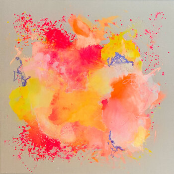 In dit werk heb ik mijn emoties uitgedrukt in levendige kleuren – helder oranje, felroze en warm geel dansen wild over het doek. De combinatie van acrylverf, olieverf en inkt creëert een krachtige energie die dynamiek en vrijheid belichaamt. Dit schilderij brengt warmte en levendigheid in elke ruimte en inspireert je om los te laten en van het moment te genieten.