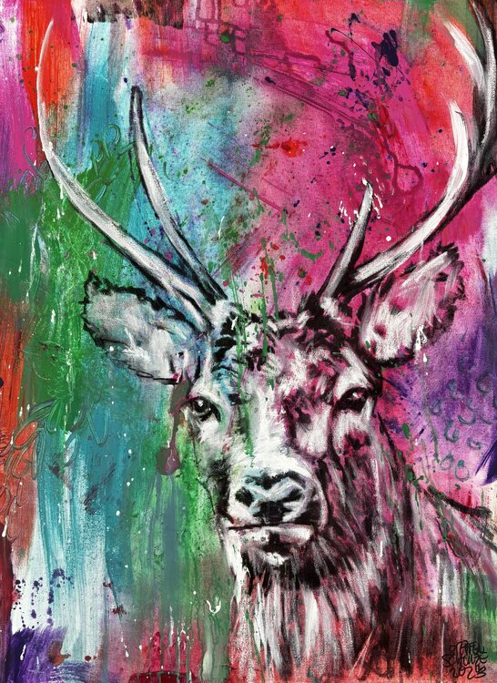 In dit expressieve en kleurrijke acrylschilderij uit de pop-art-richting heb ik de wilde energie en levendige verscheidenheid aan kleuren vastgelegd die samen het portret van een hert vormen. Elke penseelstreek en elk spatje verf vertelt een verhaal van vrijheid en veerkracht. Dit kunstwerk zal een sfeer van kracht en inspiratiebron zijn in elke ruimte waar het hangt.