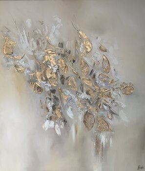 Fly away - mixed media-kunstwerk op olieverf met gips voor textuur, goudpigment met bladgoud en zilver. Artwork maakt gebruik van subtiele neutrale tinten met goud en zilver voor highlights.