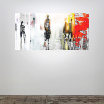 In mijn werk combineer ik fotografie en abstracte elementen om het bruisende leven van de stad vast te leggen. Het beeld straalt dynamiek en beweging uit, terwijl de sterke kleuraccenten passie en energie overbrengen. Het is een visuele echo van stedelijk lawaai en roept een gevoel van directheid en vluchtig moment op. Dit kunstwerk geeft uw kamer een moderne, levendige sfeer.