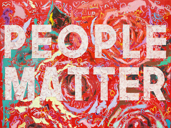 Dit is mural art op de CES 2022 show in Las Vegas. Tadaomi maakte op de 1e dag onder het schilderen met aanwezigen. Op de 2e, 3e, transformeerde Tadaomi het tot de laatste kunst, het concept van "People Matter". Mensen hebben hun zaken. Als mensen samenwerken en hun doelen en projecten bereiken. De wereld wordt er beter van. zo, We hebben samen geschilderd en het werd uiteindelijk geweldige kunst!
