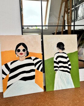 Met mijn acrylverfschilderij "Modern Muse-2" heb ik het idee van moderne vrouwelijkheid in een gereduceerde, heldere vorm voortgezet.