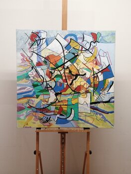 In dit werk heb ik mijn passie voor het expressionisme gekanaliseerd via het medium olieverf. Elke penseelstreek en levendige kleur representeert een dans van emoties, waarbij vormen en lijnen met elkaar verweven zijn en een visuele choreografie creëren. Ik probeer een gevoel van voortdurende beweging en transformatie over te brengen en de kijker uit te nodigen de diepten van zijn eigen gevoelens te verkennen. Dit schilderij versiert niet alleen… een ruimte, maar vult deze ook met energie en leven. Bij elke blik roept het reflectie en een gevoel van vrijheid op.