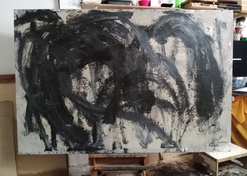 In dit werk heb ik een intense emotie van innerlijke strijd vastgelegd met olieverf. De gewaagde, donkere penseelstreken drukken de strijd en chaotische energie uit die we allemaal voelen in momenten van spanning. Ik wilde dat het werk een diepe, bijna oerkracht zou overbrengen, die elke ruimte kan transformeren tot een toevluchtsoord waar je het meest oprechte deel van je ziel kunt confronteren.